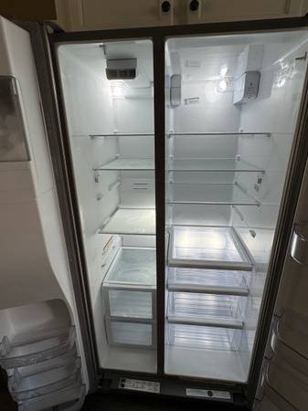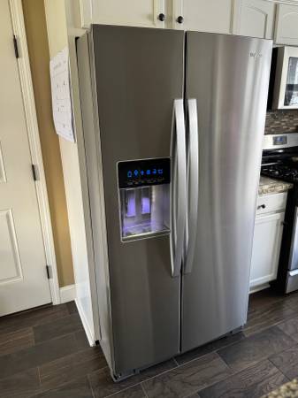 Whirlpool 28.4 cu ft refrigerator with indoor ice storage. Stainless steel. 6 months old, comes with extended 5 year warranty through Best Buy that is transferable. Perfect condition no dents.